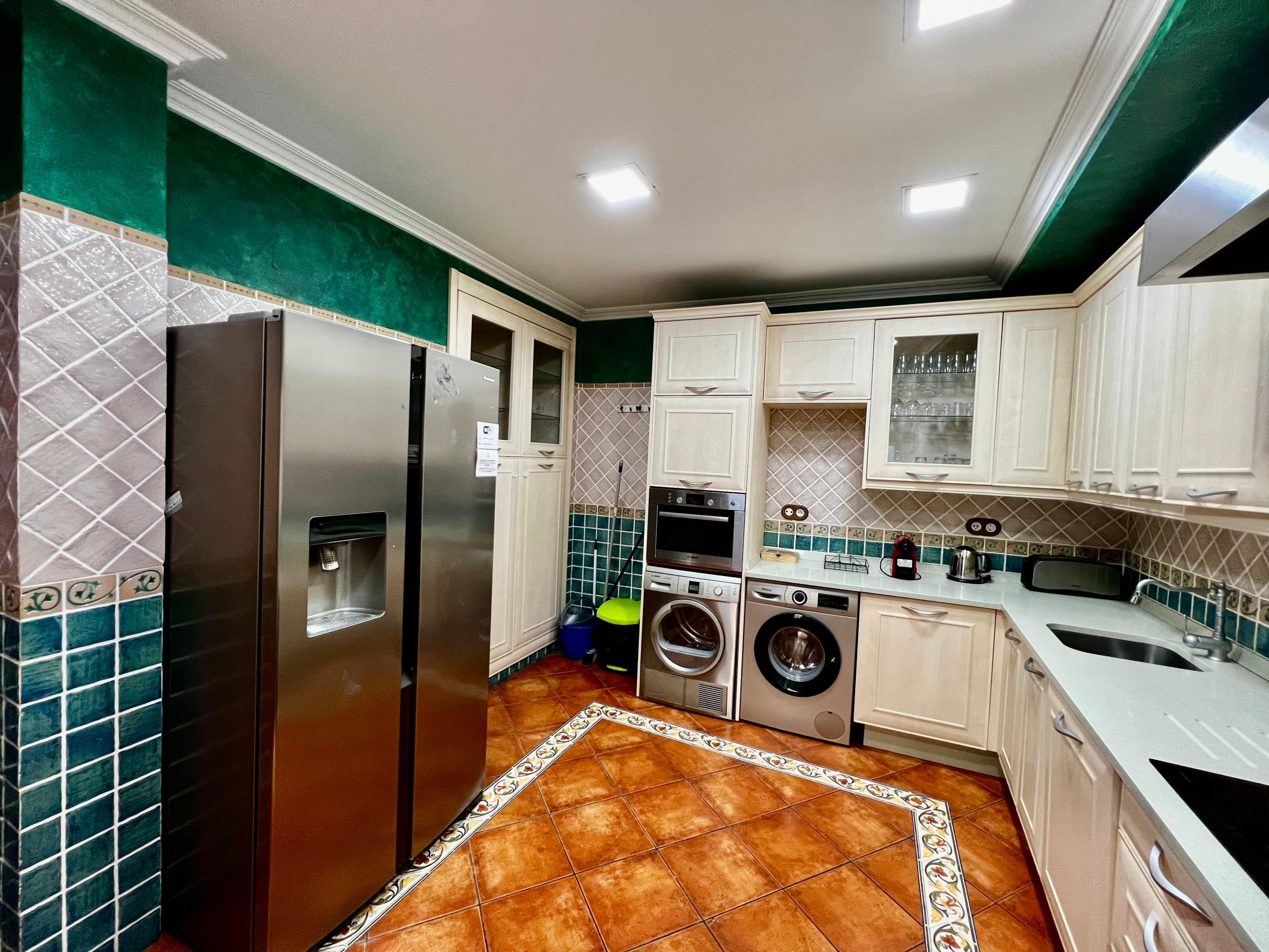 400m² en tres plantas con 4 dormitorios, 4 cuartos de baños, 2 cocinas, amplio salón, garaje, cueva acondicionada para reuniones y terraza azotea.
