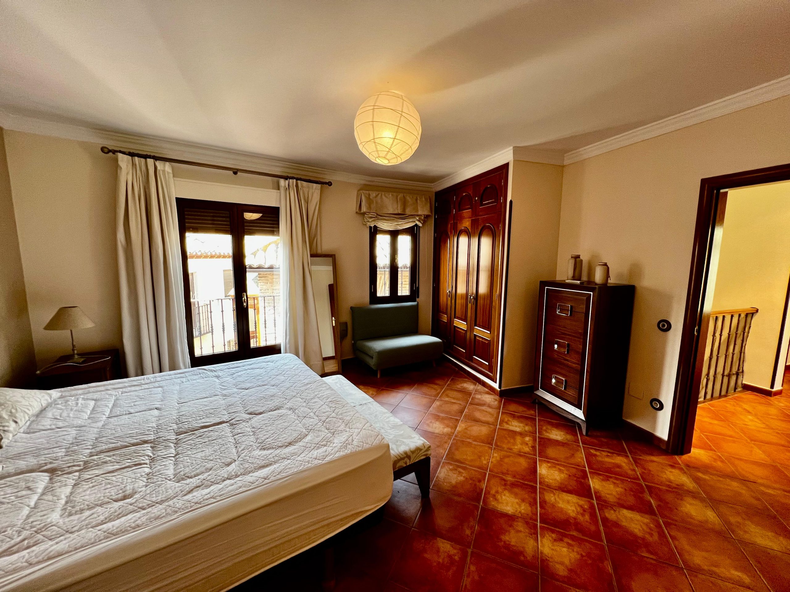 La primera planta alberga un amplio salón muy luminoso, con balcones al exterior que dan a la calle Aljibillos, una cocina principal totalmente equipada, un dormitorio y un cuarto de baño. En la segunda planta se encuentran tres dormitorios, uno de ellos —el principal— con baño en suite y vestidor, además de un cuarto de baño adicional. Desde esta planta se accede mediante una escalera de caracol a la azotea privada, un espacio ideal para disfrutar del exterior en plena ciudad histórica.