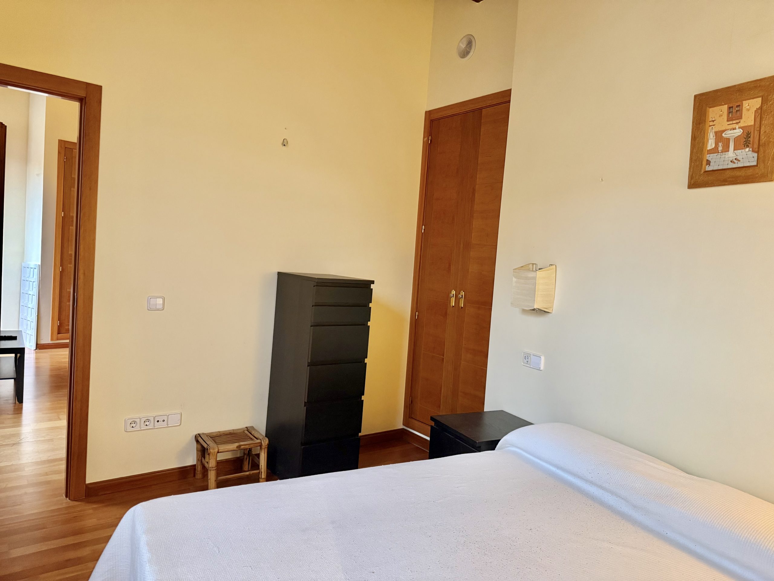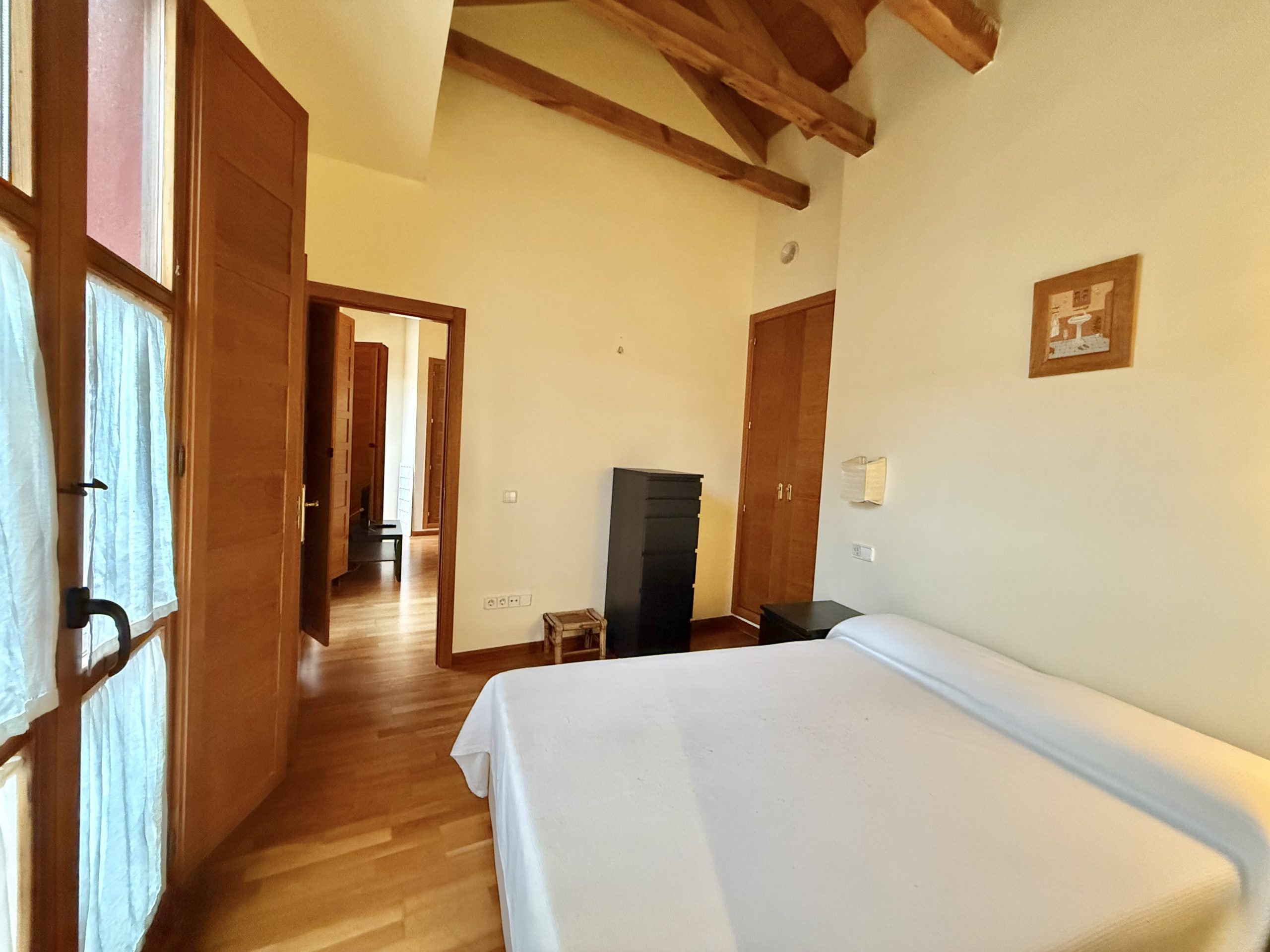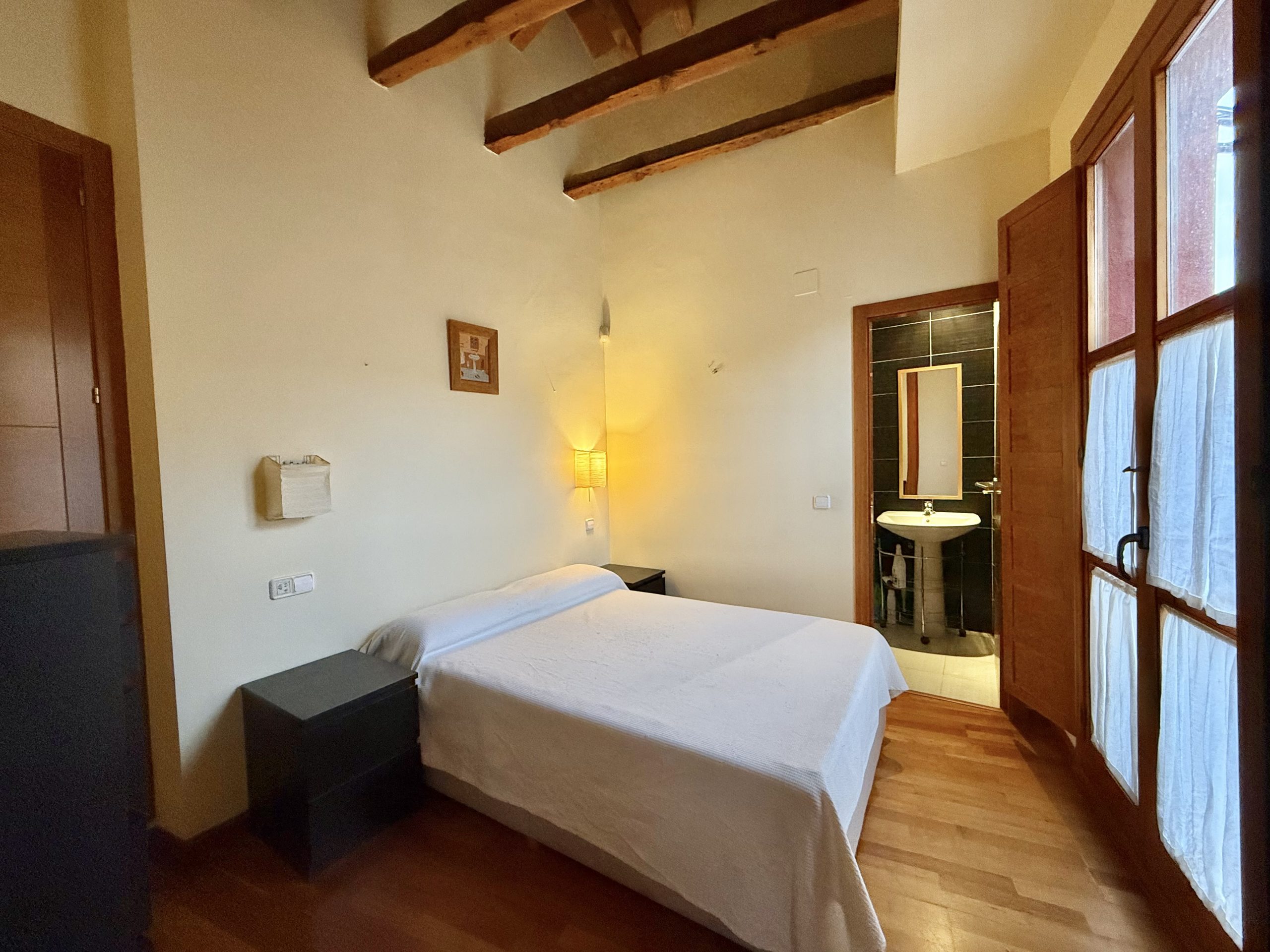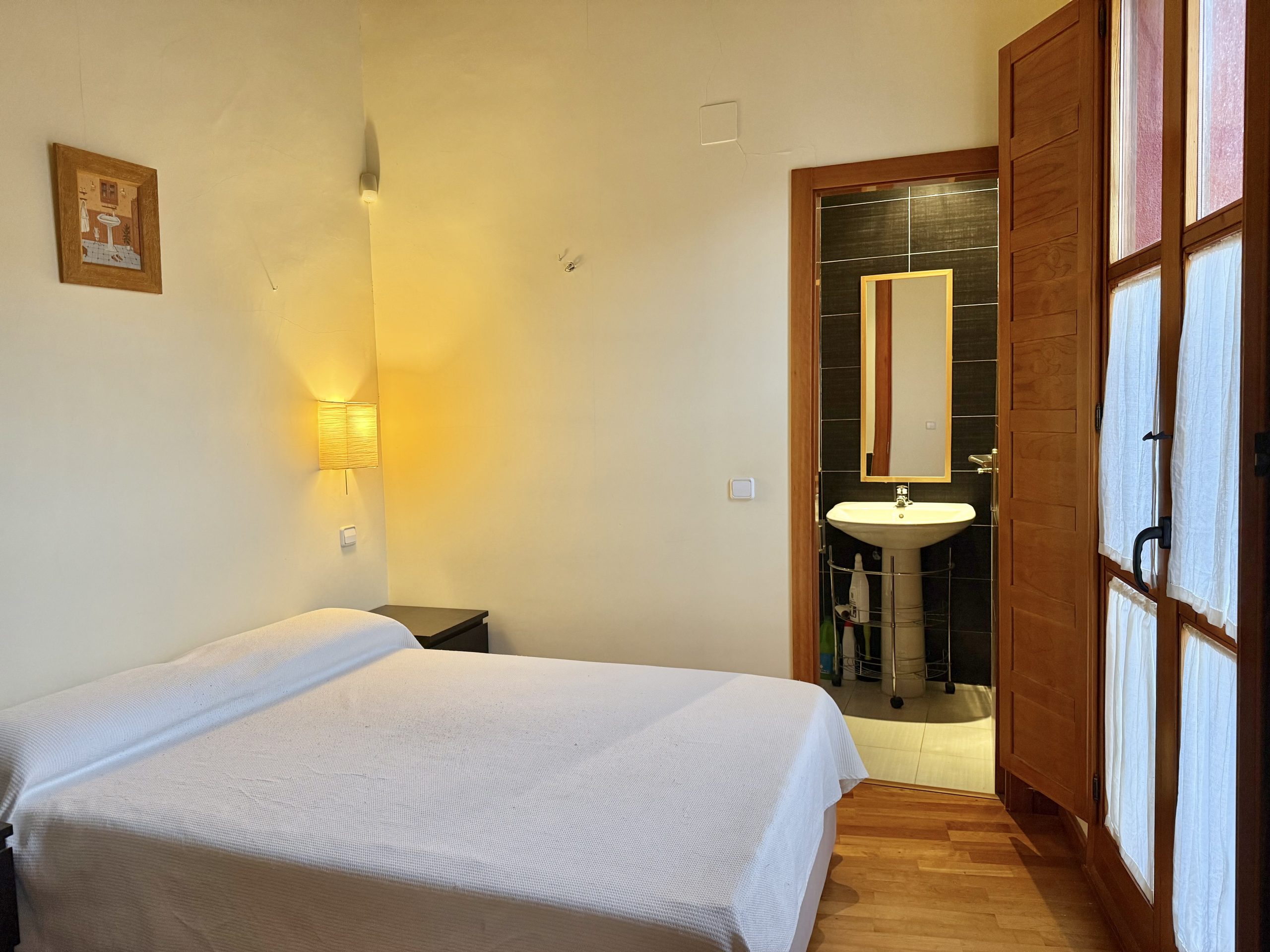 El dormitorio es amplio, también con balcón a la plaza, y la vivienda se completa con un cuarto de baño completo.