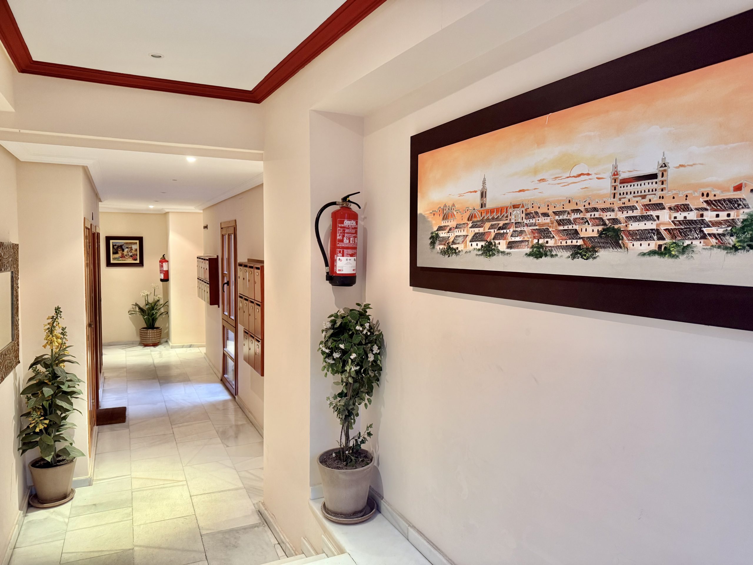 El edificio destaca por sus zonas comunes muy cuidadas y ajardinadas, además de contar con piscina comunitaria, un valor añadido excepcional y poco habitual en el Casco Histórico de Toledo.