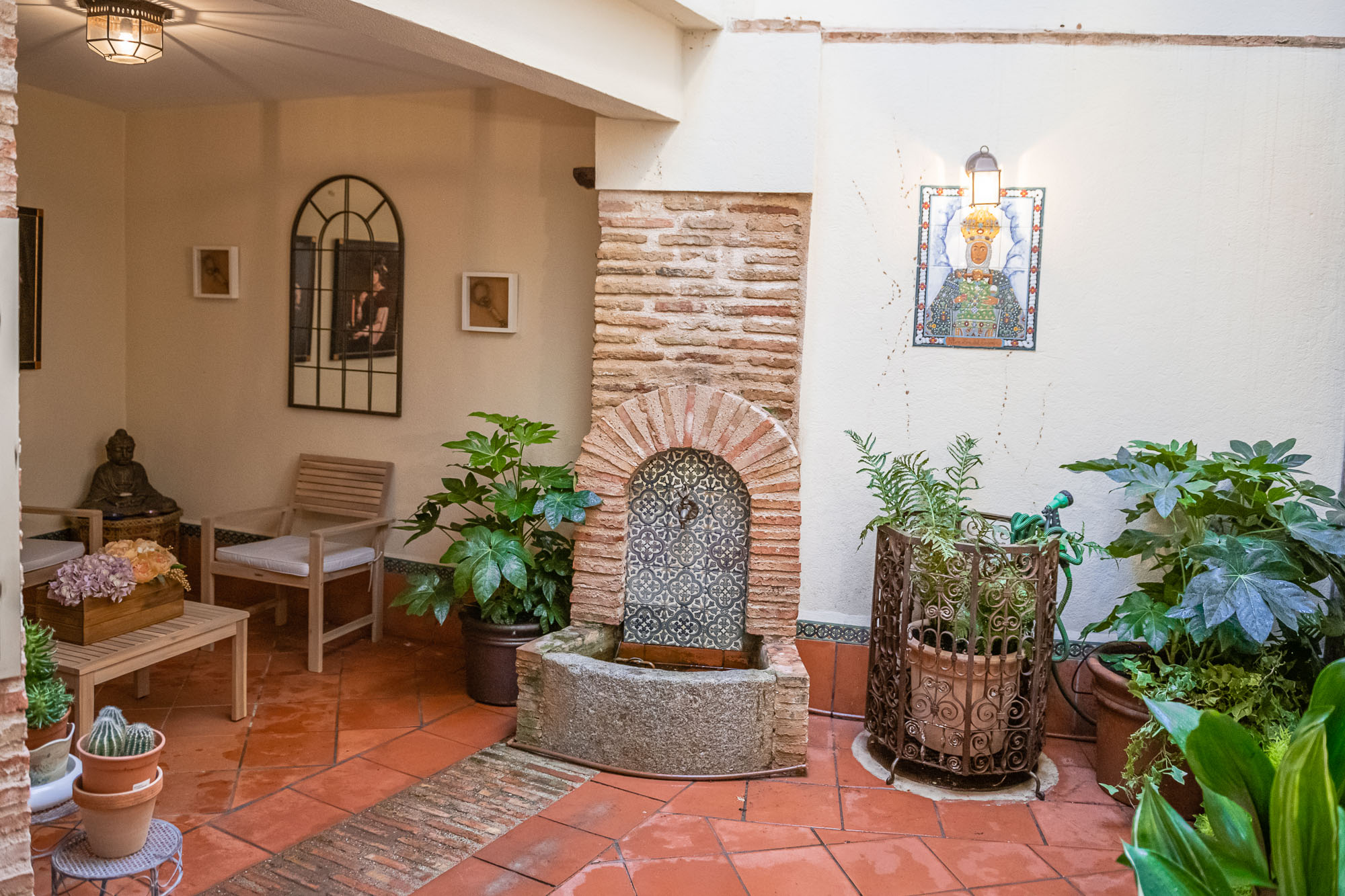 La planta baja te recibe con un amplio dormitorio, un acogedor recibidor, un baño completo y una cueva típica que añade un toque de autenticidad al haber formado parte del conjunto de los baños del ángel.