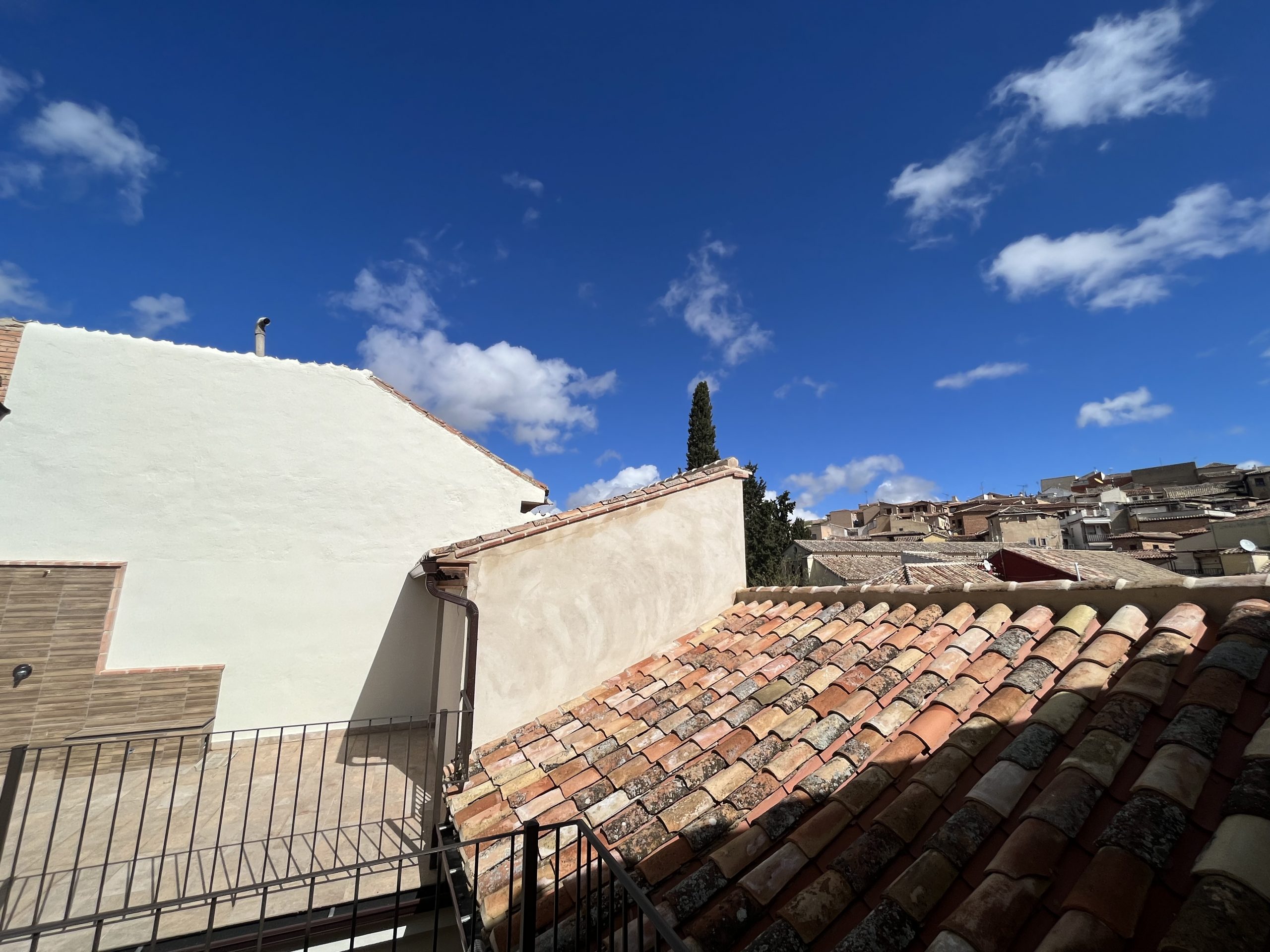 La vivienda dispone de un amplio y luminoso salón-cocina americana con ventanales que dan acceso a la terraza-azotea privada de mas de 20m², dos dormitorios y un baño completo. El dormitorio principal cuenta con acceso privado a una segunda terraza-azotea y el dormitorio secundario con ventanas orientadas a la zona de los cigarrales donde se disfruta de una increíbles vistas, ambas estancias cuentan con ventanas y/o balcón al exterior, armarios empotrados y equipos de bomba frio calor.